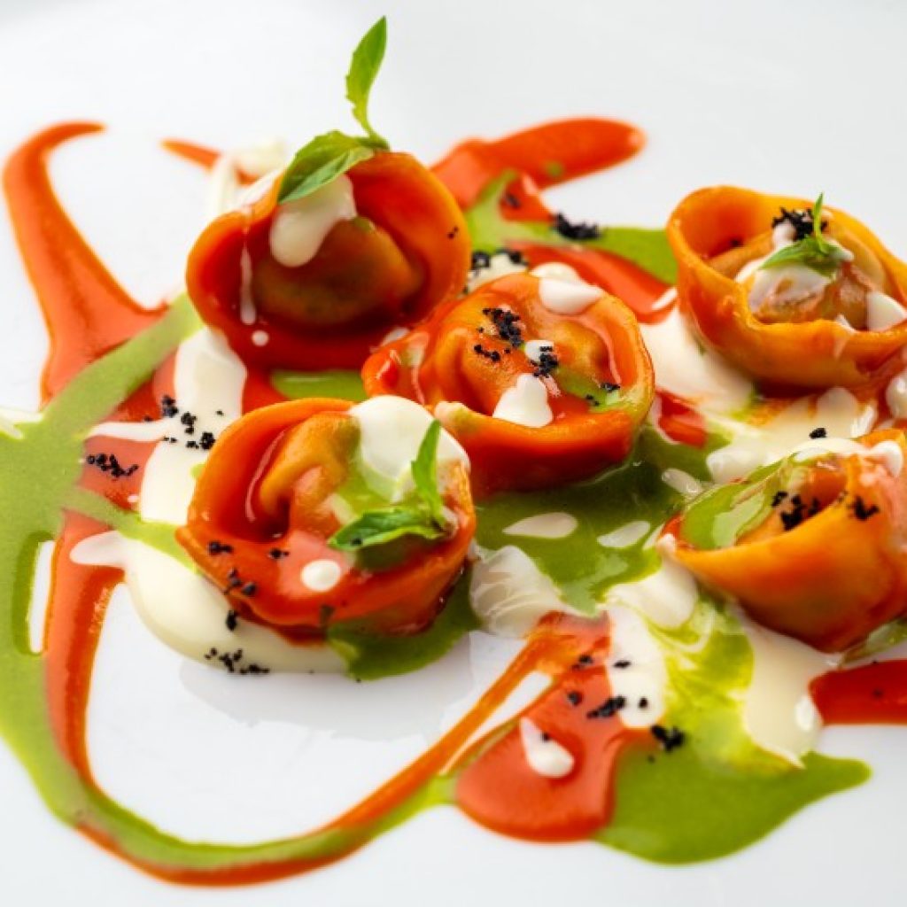 Ravioli stuffed with eggplants with tomato sauce